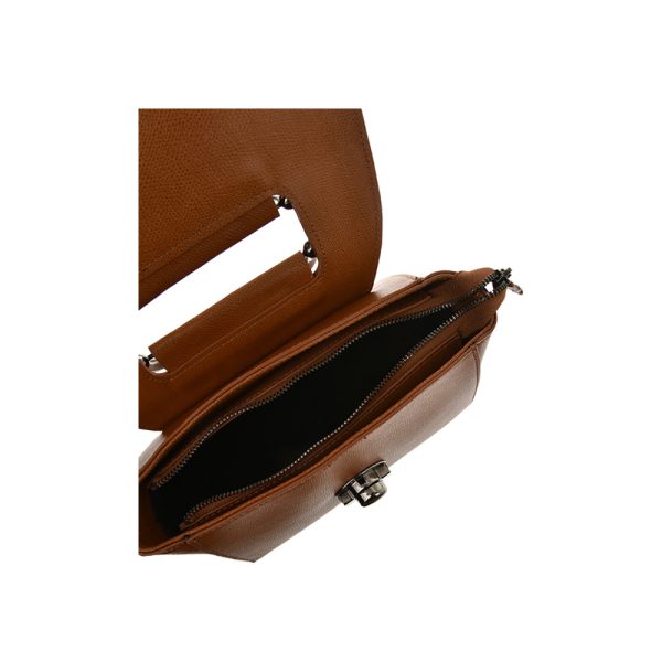 Outer: 100% LeatherTwo top handleFlap over with metalic and zip closureOne zip exterior pocketOne zip interior pocketOne slip interior pocketAdjustable shoulder strap. Maximum length 115 cm