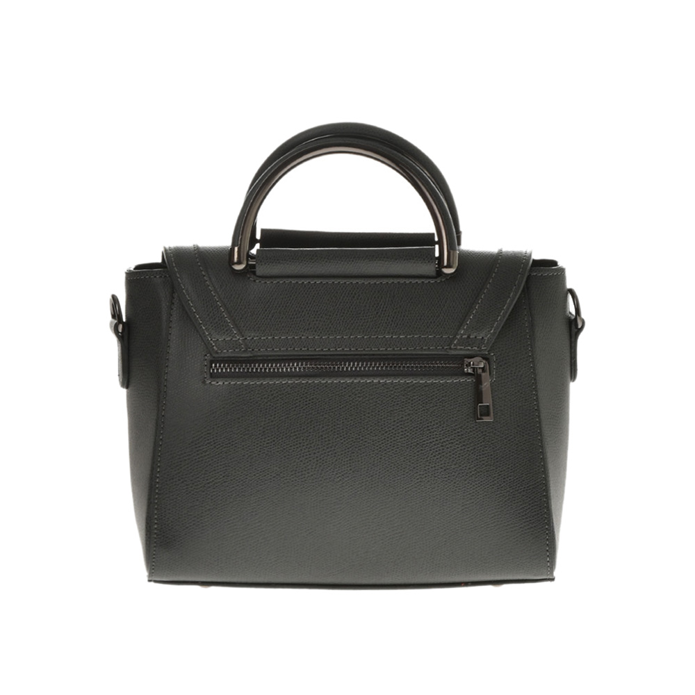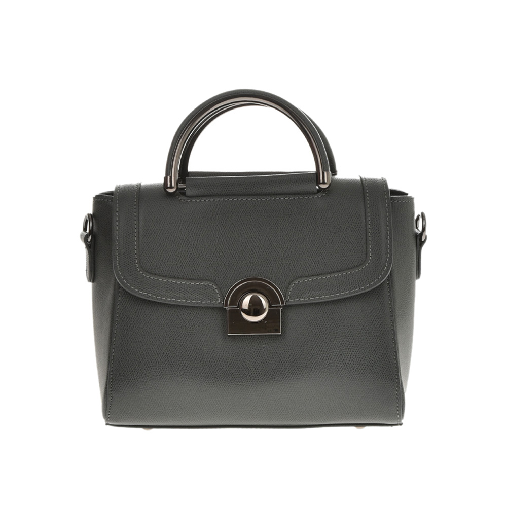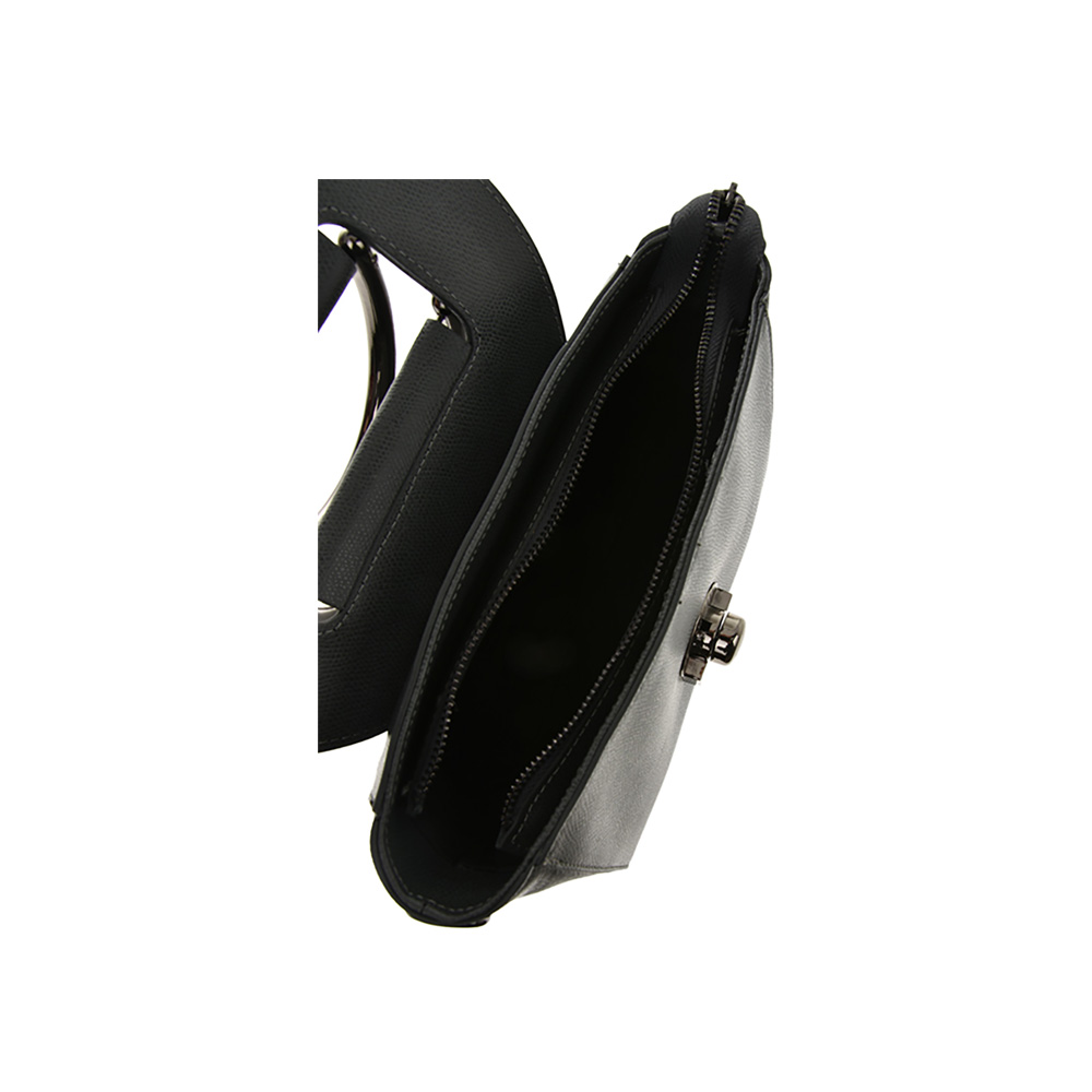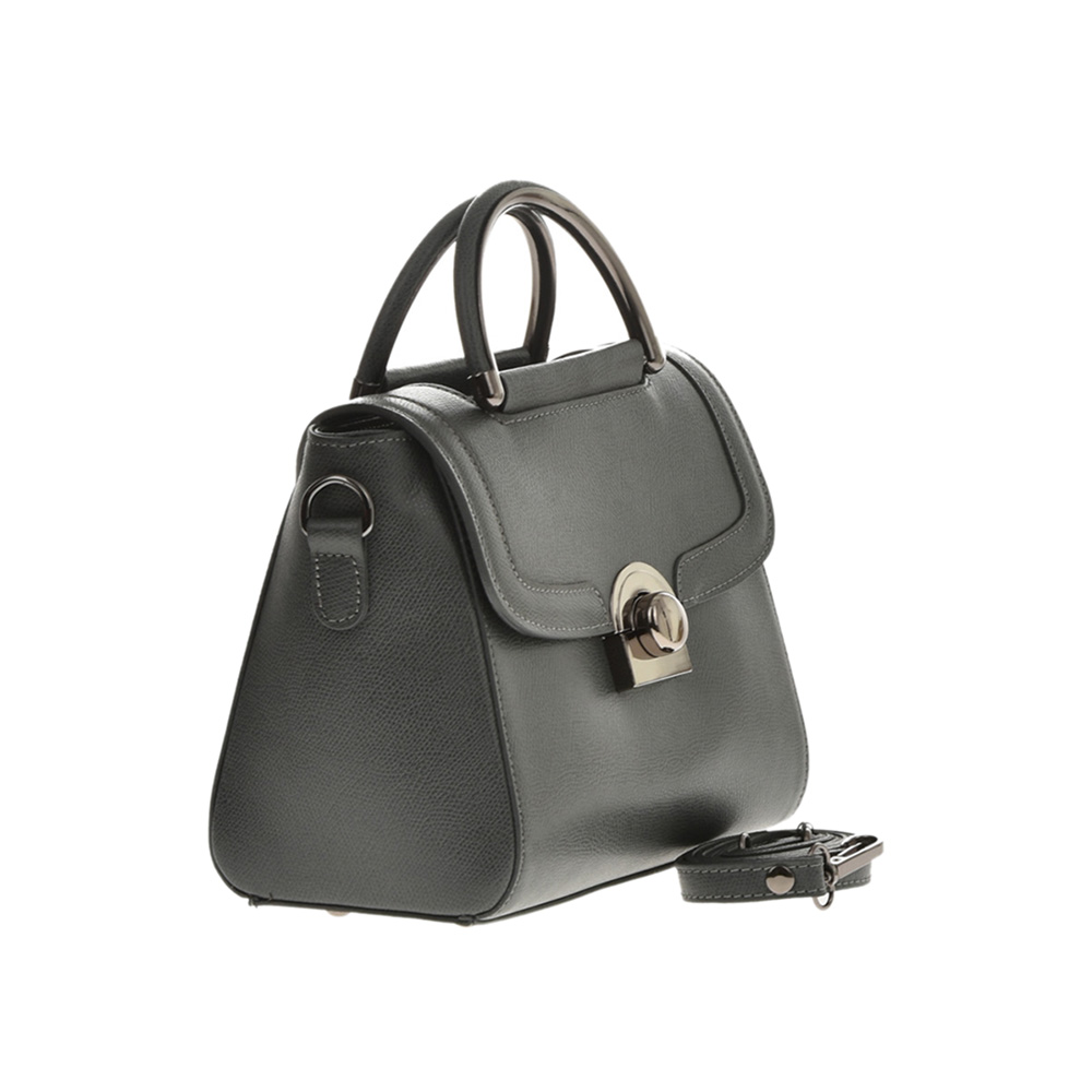 Outer: 100% LeatherTwo top handleFlap over with metalic and zip closureOne zip exterior pocketOne zip interior pocketOne slip interior pocketAdjustable shoulder strap. Maximum length 115 cm