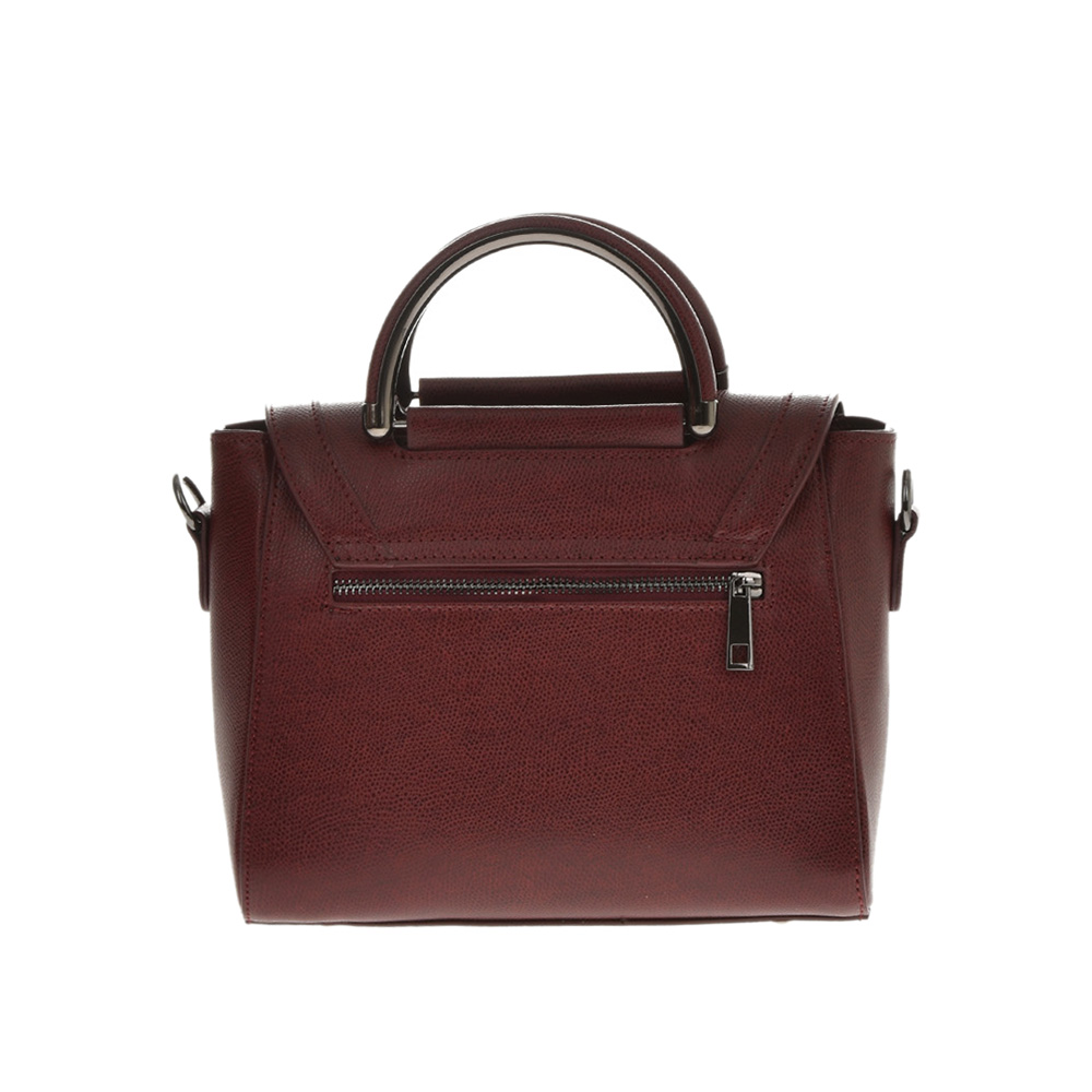 Outer: 100% LeatherTwo top handleFlap over with metalic and zip closureOne zip exterior pocketOne zip interior pocketOne slip interior pocketAdjustable shoulder strap. Maximum length 115 cm