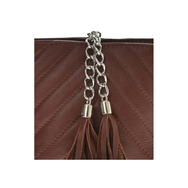 Outer: 100% LeatherTassel designOne top handleTop zip closureOne zip interior pocketNo adjustable shoulder strap. length 88