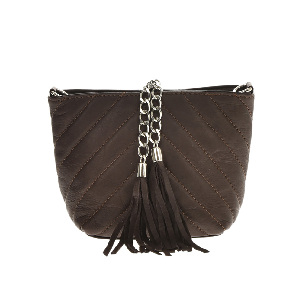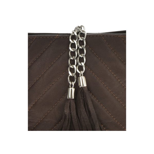 Outer: 100% LeatherTassel designOne top handleTop zip closureOne zip interior pocketNo adjustable shoulder strap. length 88