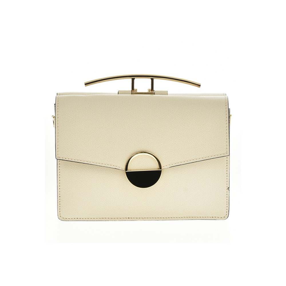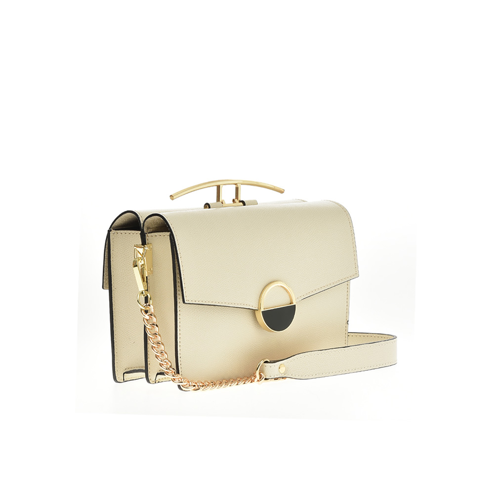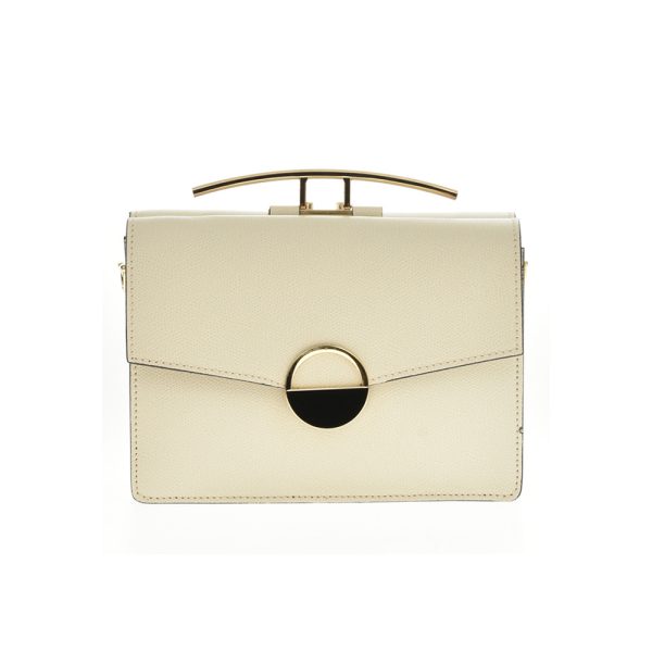 Outer: 100% LeatherOne top handleTop flap over with magnetic button closureTwo slip interior pocketsShoulder strap, length 123 cm