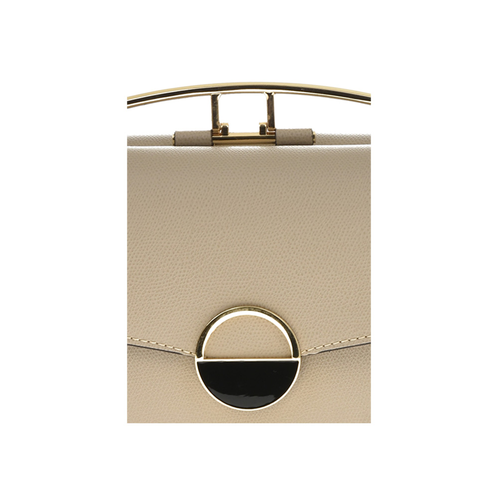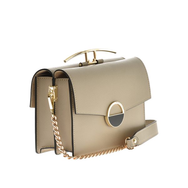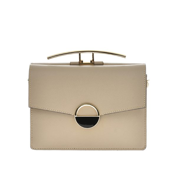 Outer: 100% LeatherOne top handleTop flap over with magnetic button closureTwo slip interior pocketsShoulder strap, length 123 cm