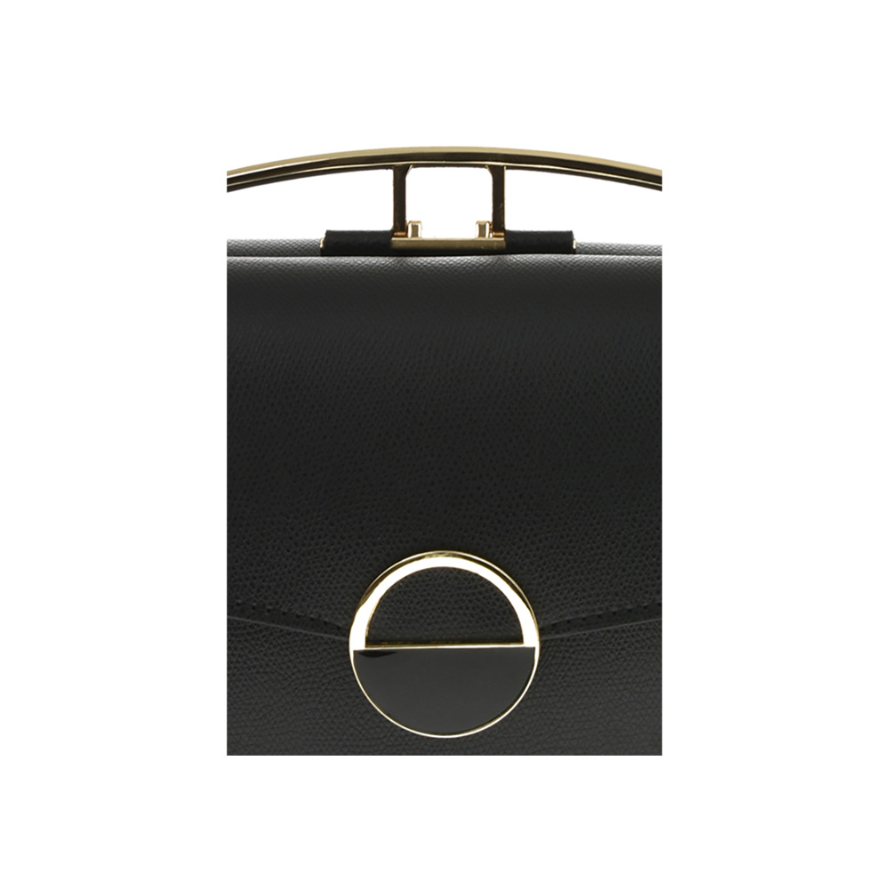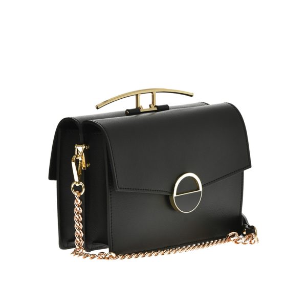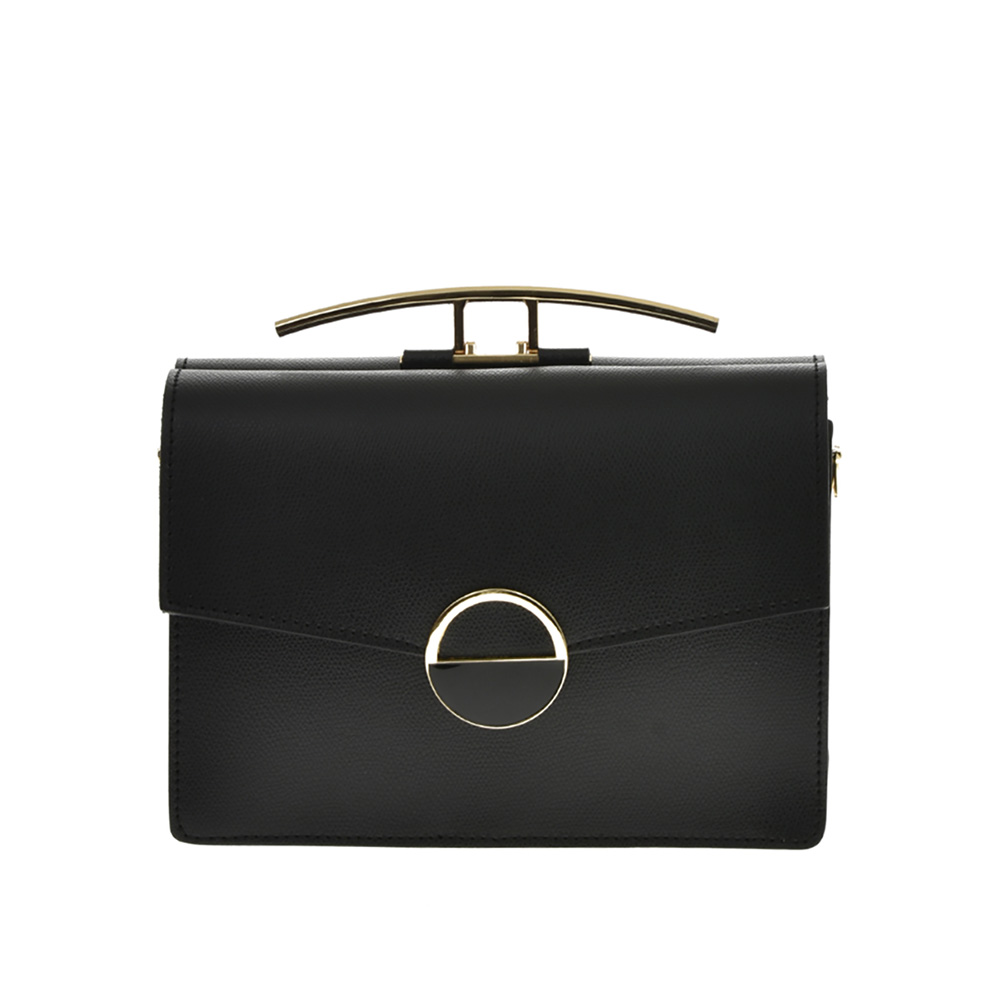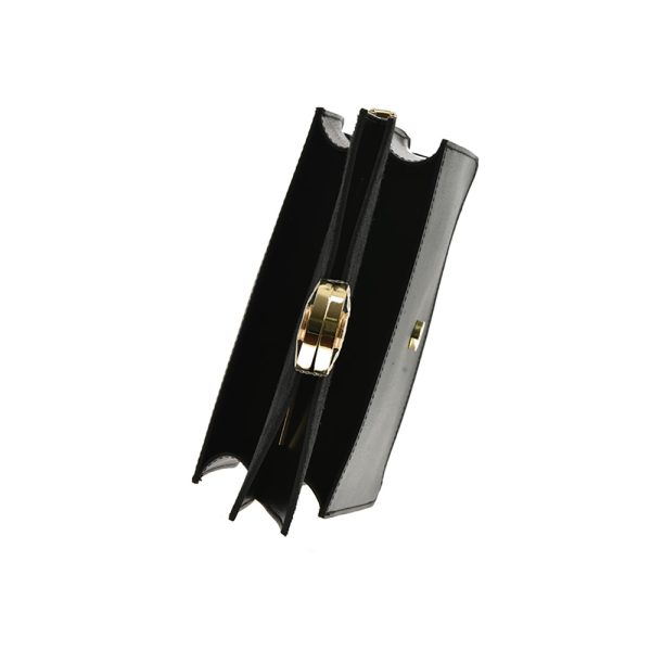 Outer: 100% LeatherOne top handleTop flap over with magnetic button closureTwo slip interior pocketsShoulder strap, length 123 cm