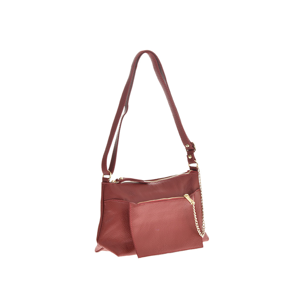 Outer: 100% LeatherAdjustable shoulder strap. Maximum length 120 cmTop zip closureOne detachable pocket with zip closureOne zip exterior pocketOne slip exterior pocketOne slip interior pocketOne zip interior pocket