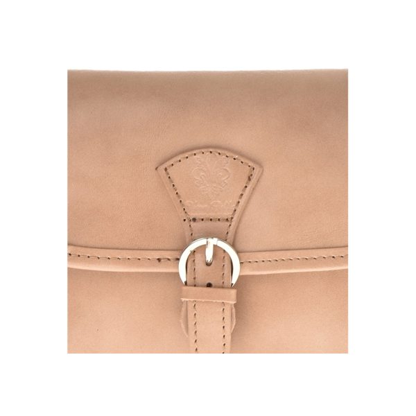Outer: 100% LeatherNo adjustable shoulder strap, length 134 cmTop flap over with magnetic button closureOne zip exterior pocket