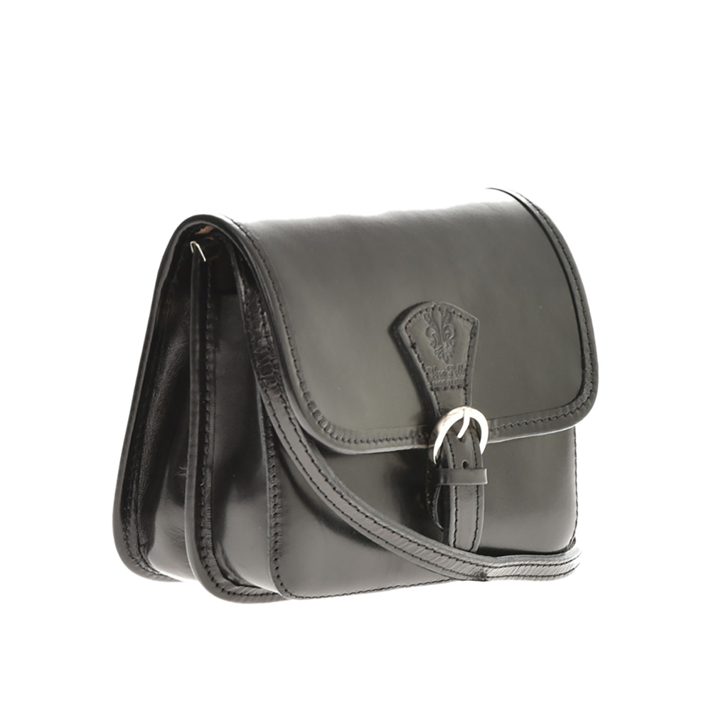 Outer: 100% LeatherNo adjustable shoulder strap, length 134 cmTop flap over with magnetic button closureOne zip exterior pocket