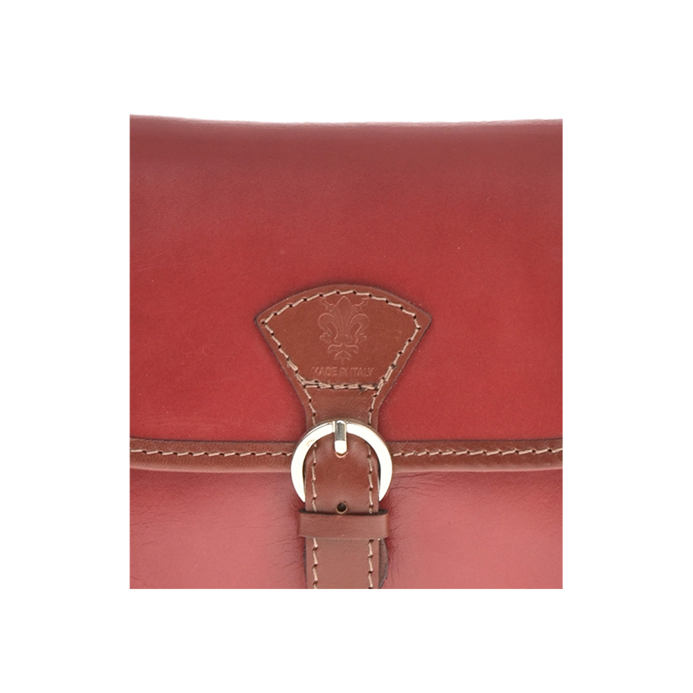 Outer: 100% LeatherNo adjustable shoulder strap, length 134 cmTop flap over with magnetic button closureOne zip exterior pocket