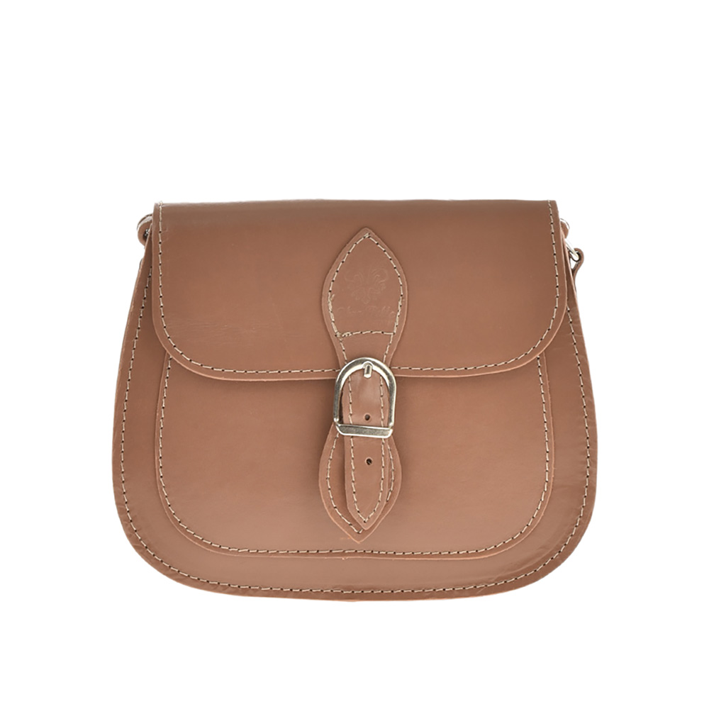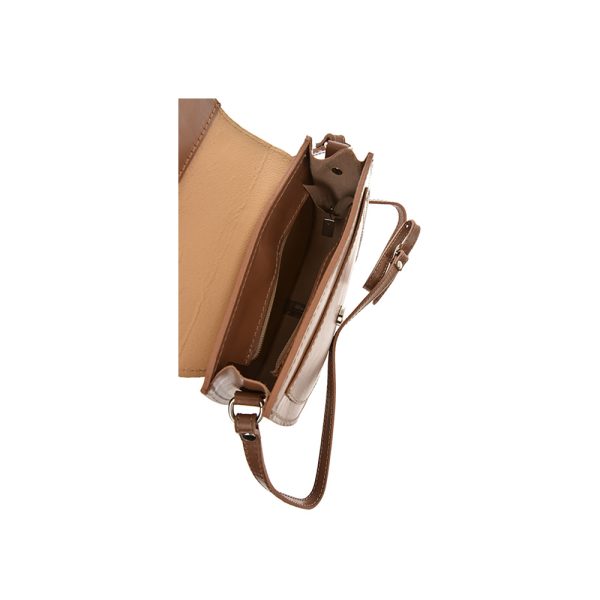 Outer: 100% LeatherAdjustable shoulder strap, length 135 cmTop flap over with magnetic button closureOne slip exterior pocket