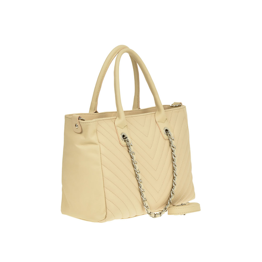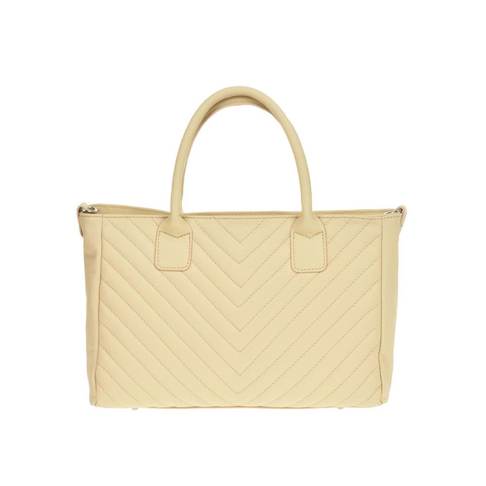 Outer: 100% LeatherTwo top handle Top zip closureTwo zip interior pocketsTwo slip interior pocketsAdjustable shoulder strap, length 124