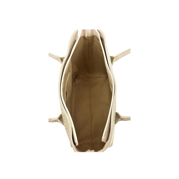 Outer: 100% Leather The hide may show color variations in places or marks due to its special technological process. Top zip closure Two top handlesTwo slip interior pocketsOne zip interior pocketNo shoulder strap.