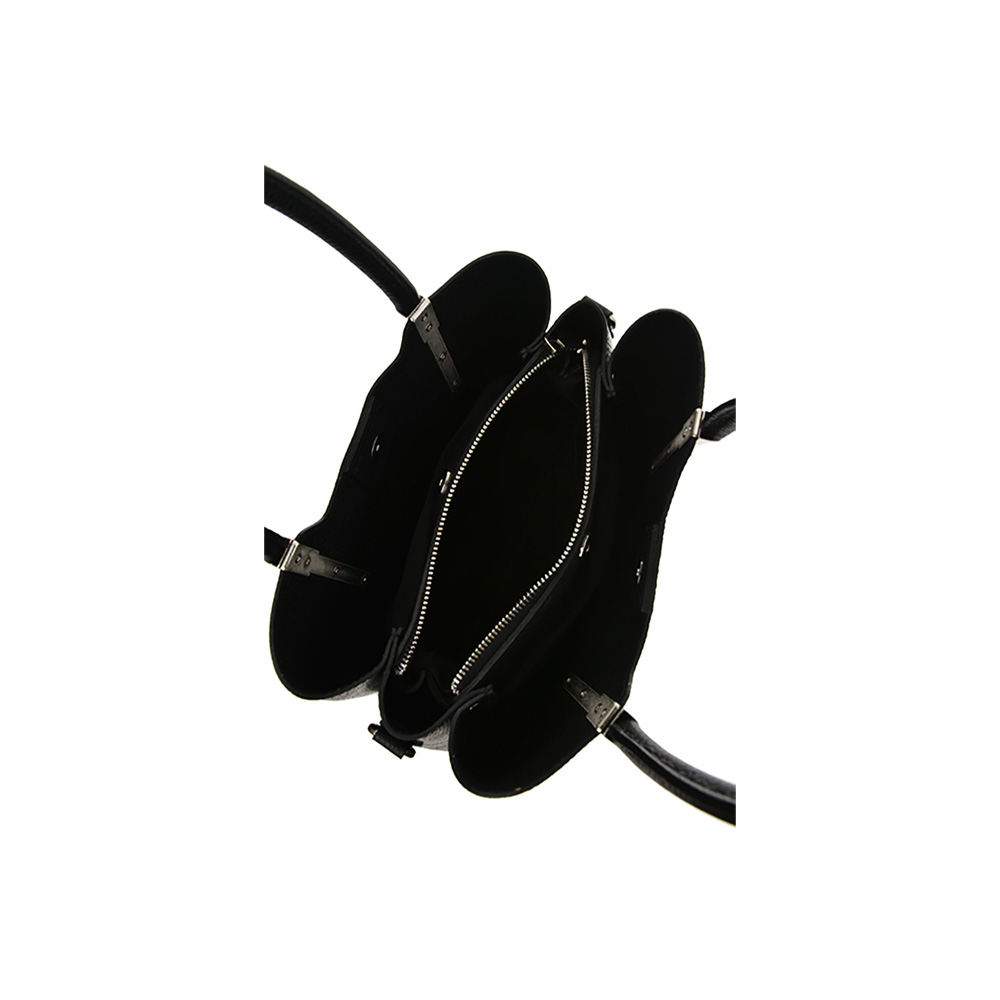 Outer: 100% LeatherTop zip and magnetic closureTwo top handleThree compartmentsOne zip interior pocketTwo slip interior pocketsAdjustable shoulder strap. length 114 cm