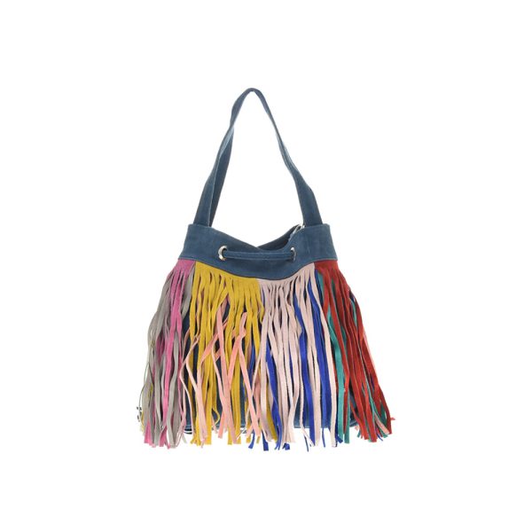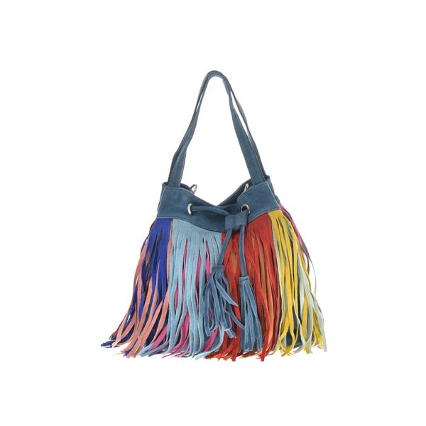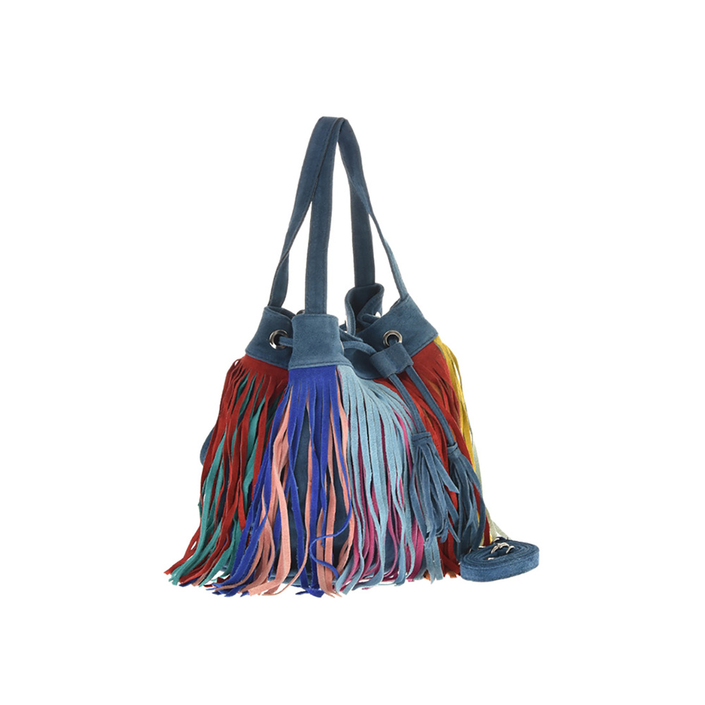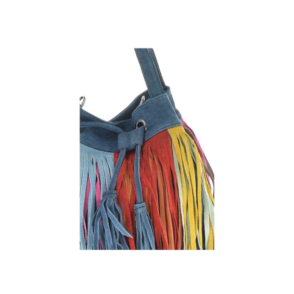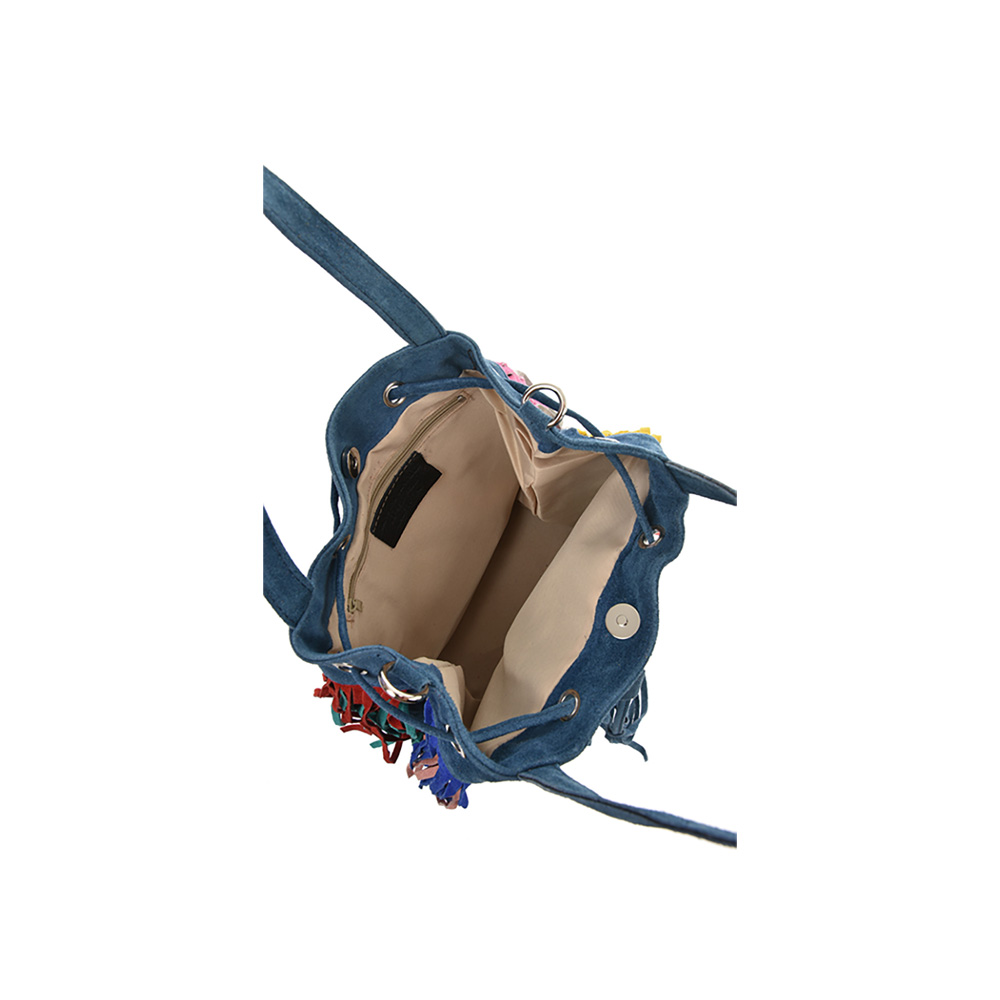 Outer: 100% LeatherTwo top handlesMagnetic button and draw strings closureOne zip interior pocketAdjustable shoulder strap. Length 128 cm