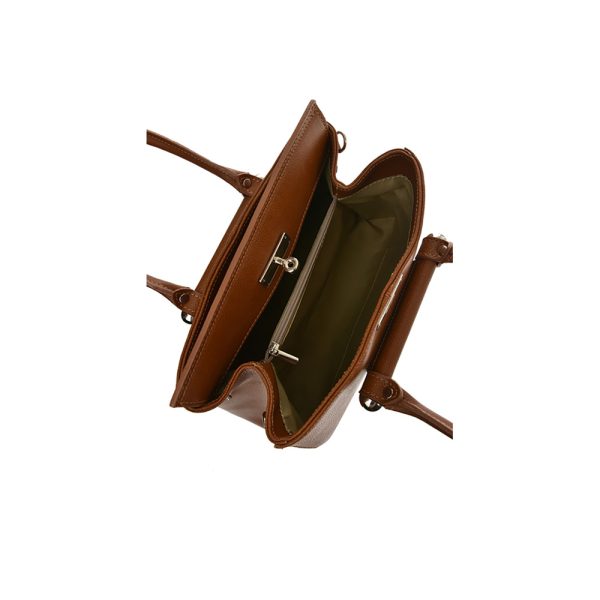 Outer: 100% LeatherTwo top handleTop metalic closureTwo compartmentsTwo zip interior pocketsTwo slip interior pocketsAdjustable shoulder strap. Maximum length 124 cm