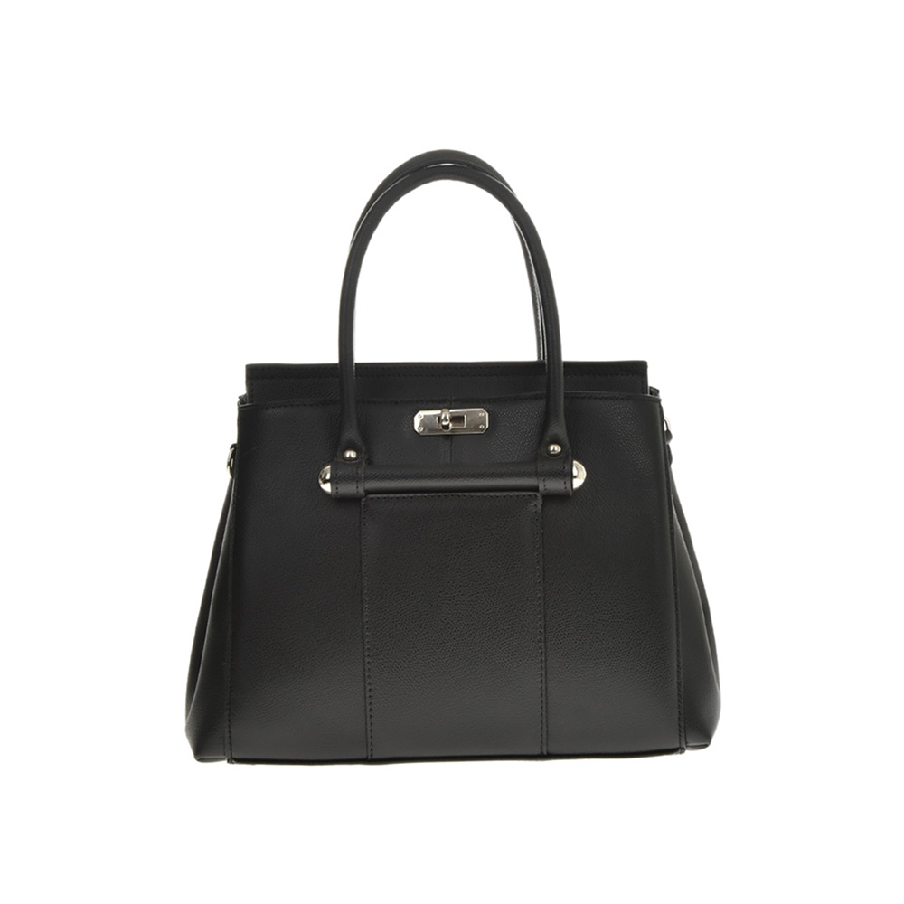 Outer: 100% LeatherTwo top handleTop metalic closureTwo compartmentsTwo zip interior pocketsTwo slip interior pocketsAdjustable shoulder strap. Maximum length 124 cm